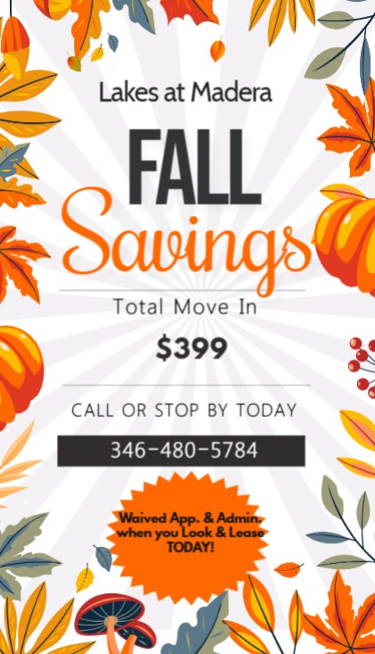 Welcome to Lakes at Madera, a vibrant apartment community in the heart of Baytown, Texas. Surrounded by popular eateries, upscale shopping, and year-round outdoor fun, everything you love is just minutes away. From nearby fitness options to our lively atmosphere, The Lakes at Madera brings ease and energy to your everyday living. `