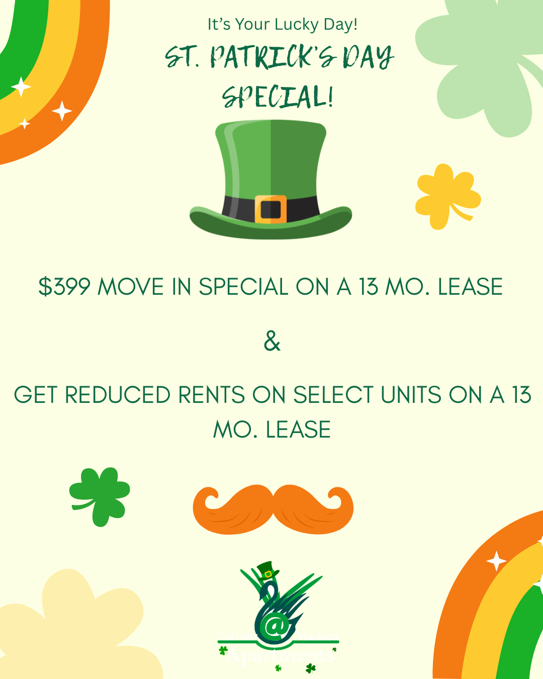Unlock big savings this month! • $399 Total Move‑In on all 2+ bedrooms with a 13‑month lease. • Reduced pricing on select 1x1 floorplans—perfect for anyone looking for comfort and value. APPLY NOW!