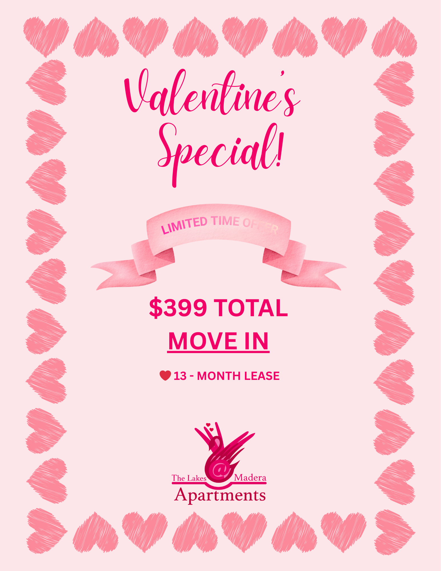 🤍Valentine’s Special: Get a $399 Move‑In🤍 * Minimum lease term applies. Other costs and fees excluded. * Treat yourself to a place you’ll adore. Whether you’re starting fresh or settling in with someone special, now is the perfect time to make your move. ✨ Contact the office for full details 💌 Schedule a tour and feel the love